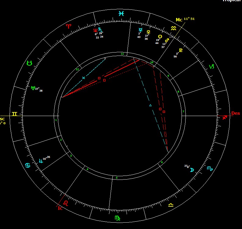 Venus has joined Mercury in Pisces. Jupiter has come in from the cold by forming a line of ease with Mercury. Saturn has moved into Aries, whilst the bundle has opened up completely. Pluto has enabled a trine to form between the Neptune/Saturn conjunction, Uranus and Pluto/Moon.